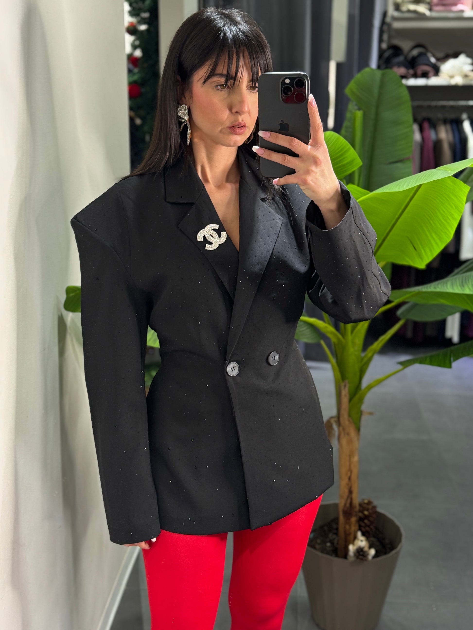 Blazer strutturato con spallina micro strass